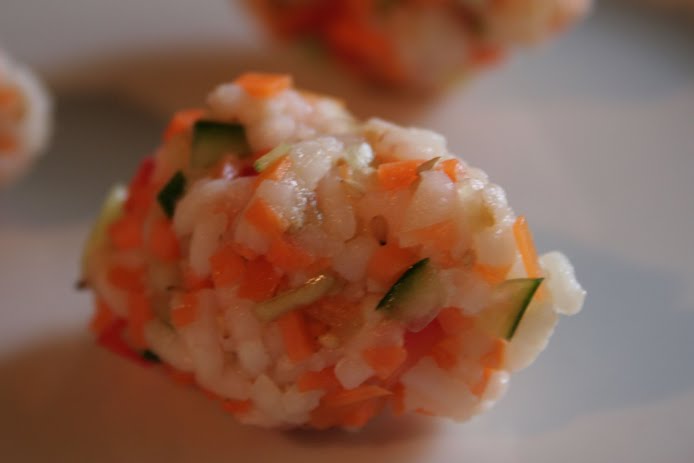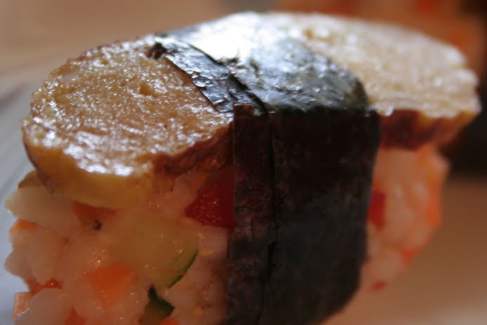 Eine Variante ist weiterhin den Reis mit Gemüse und Sesam zu mischen, wie es bei der Zubereitung der Inari beschrieben wird.