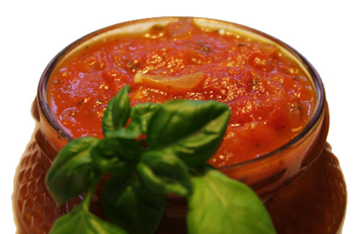 Die Kräuter fein hacken. Zwiebeln und Knoblauch ebenfalls fein hacken und in Öl glasig dünsten. Die Tomaten sowie die Gewürze und Kräuter zufügen und kräftig verrühren. Die Sauce aufkochen lassen und für 90-120 Minuten köcheln lassen. Dabei gelegentlich umrühren. Am Ende noch einmal richtig aufkochen und die heiße Sauce noch kochend randvoll in Gläser füllen, zudrehen und umgestürzt abkühlen lassen.