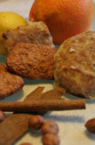 Nach dem Einweichen die restlichen Zutaten zu der Hörnchenmasse geben und kräftig unterkneten. Es entsteht eine weiche Masse, die auf die Obladen gestrichen werden kann. Die Lebkuchen portionsweise auf mit Backpapier ausgelegte Bleche setzen und im vorgeheizten Backofen bei 180-200 °C ca. 15-20 Minuten backen.
