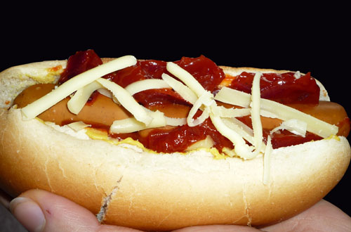 Die Brötchen auf der langen Seite einschneiden. Die Innenseiten mit Senf bestreichen, den Käse und die Sauce hineingeben und die heißen Wienerle hineindrücken.